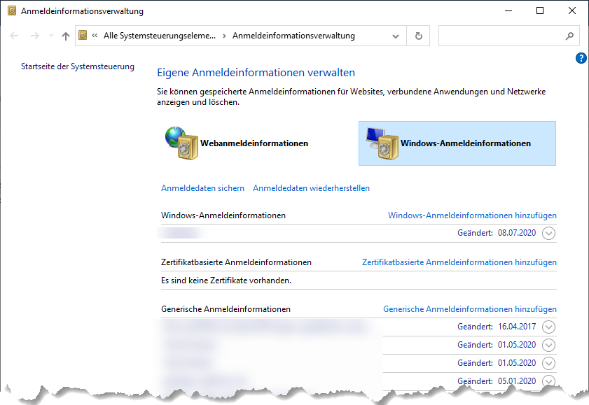 - Type: Die Art des Kennworts - z.B. DomainPassword oder Generic. Unterstützt werden Generic, DomainPassord und DomainCertifcate. Alle anderen angebotenen Typen werden von Windows nicht mehr unterstützt